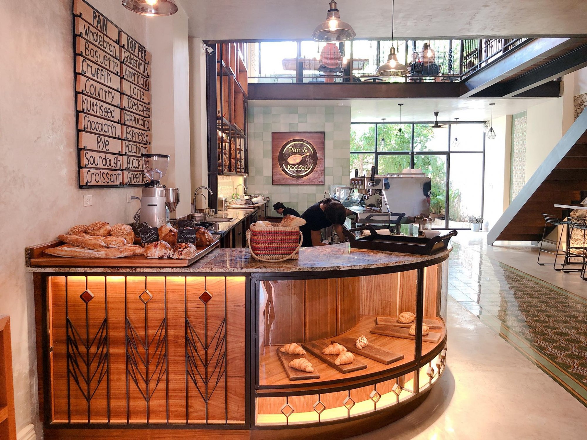 Pan & Kof.feé si presenta come locale moderno ed elegante, unendo il gusto architettonico yucateco alle ultime tendenze del design. Il profumo di pane e di caffé vi avvolge dall’ingresso e vi guida fino al bancone, dove gli occhi possono illuminarsi alla vista dei prodotti di pasticceria.